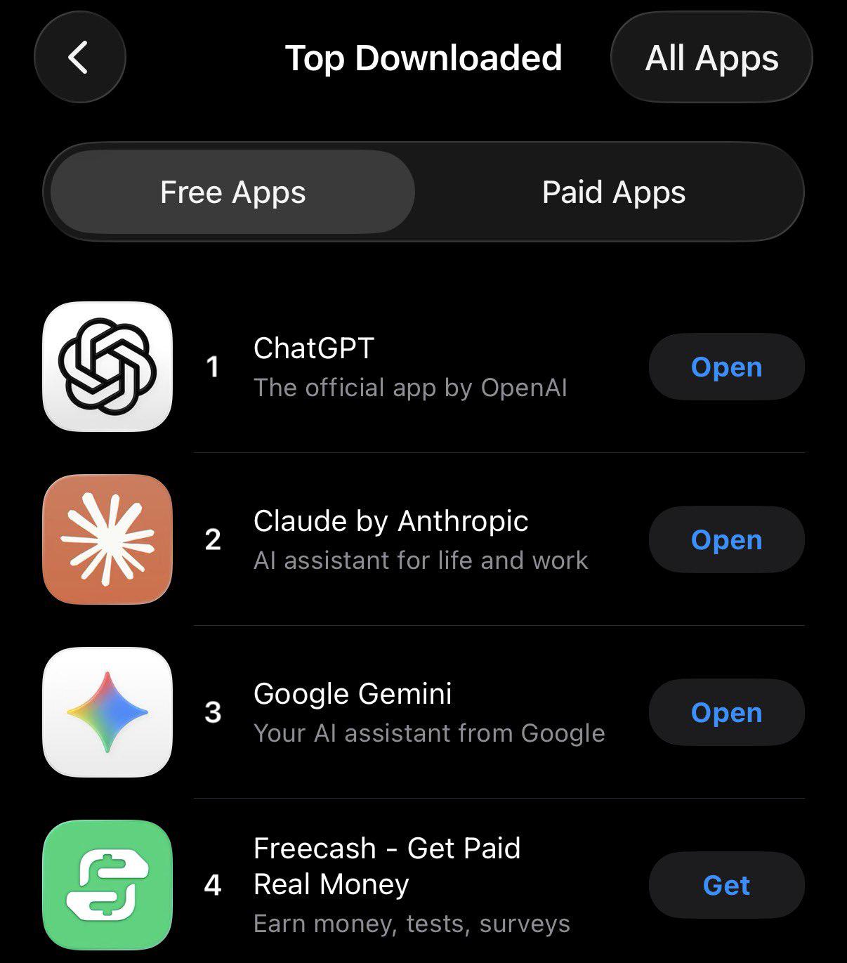 By Saturday night, Claude had jumped to #1. ChatGPT fell to #2. Google’s Gemini dropped to #4. Evrim Ağı